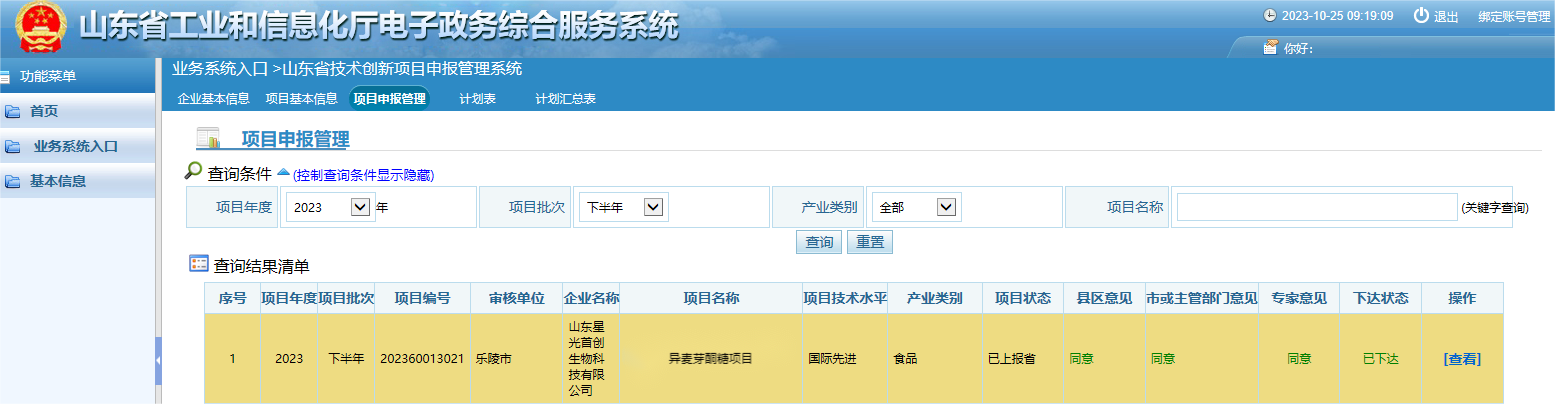 星光首創一項目獲得山東省技術創新項目批復! 2023.10.25